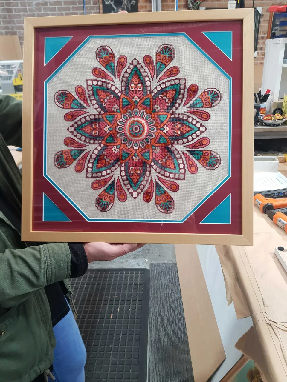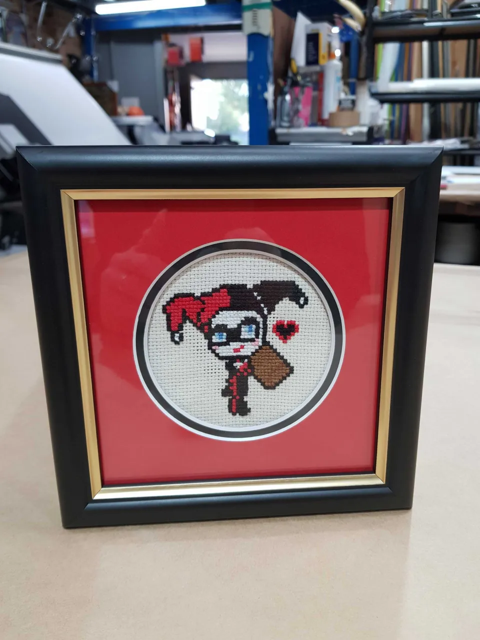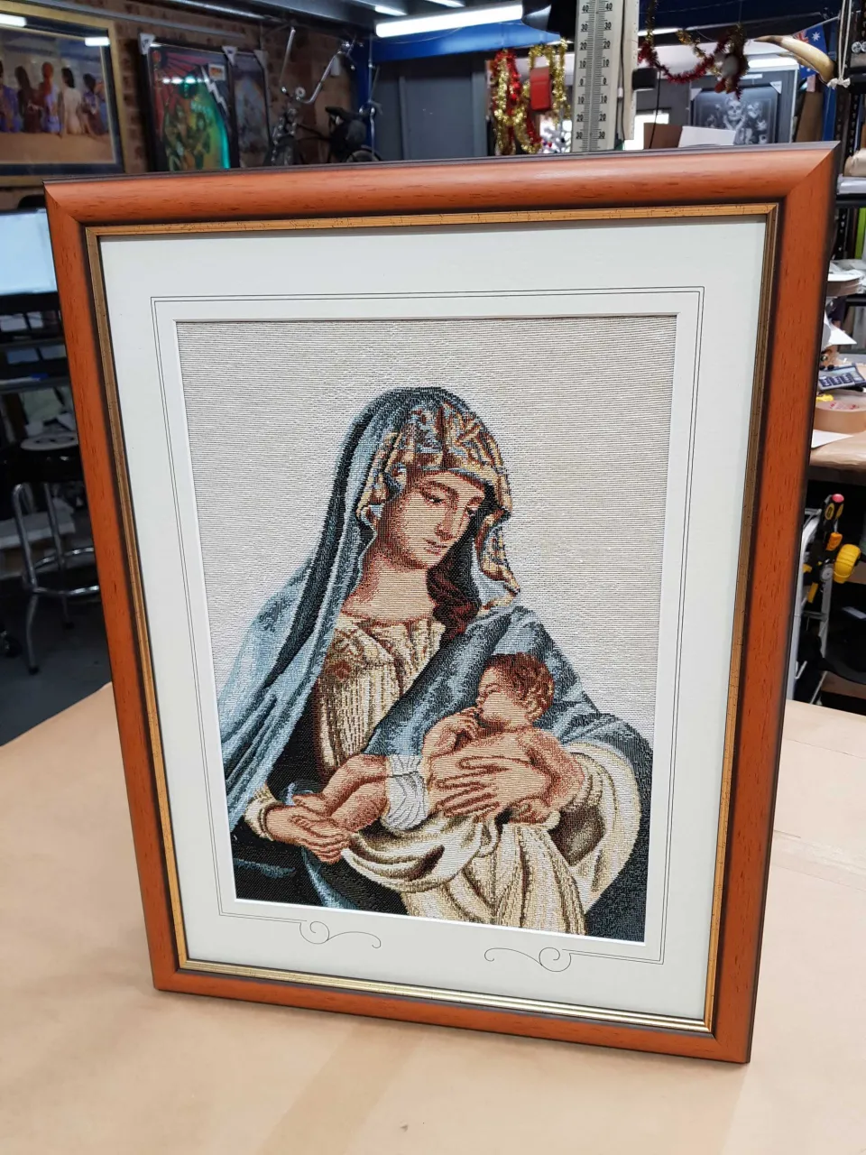 Cross stitch, tapestry, fabrics of all kinds are also a specialty of Mr Frame
